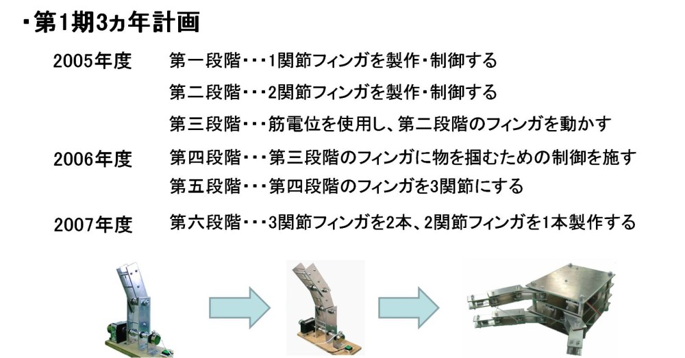 という最終目標を新たに設定し、5本指の筋電義手の完成を目指し、計画したものです。